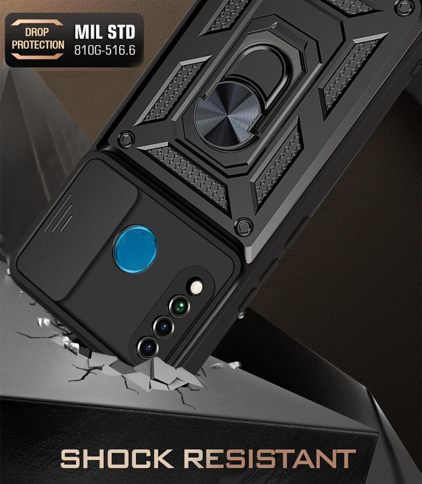 Coque arrière de haute qualité en PC + TPU pour Huawei P30 Lite avec béquille et cache-caméra coulissant, et aimant en fer.