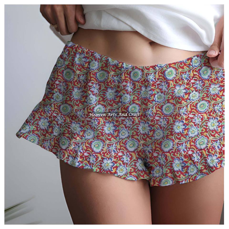 Nom du produit:Short à volants imprimé à la main au bloc, 100 % coton