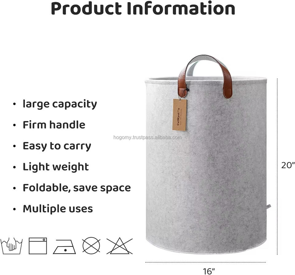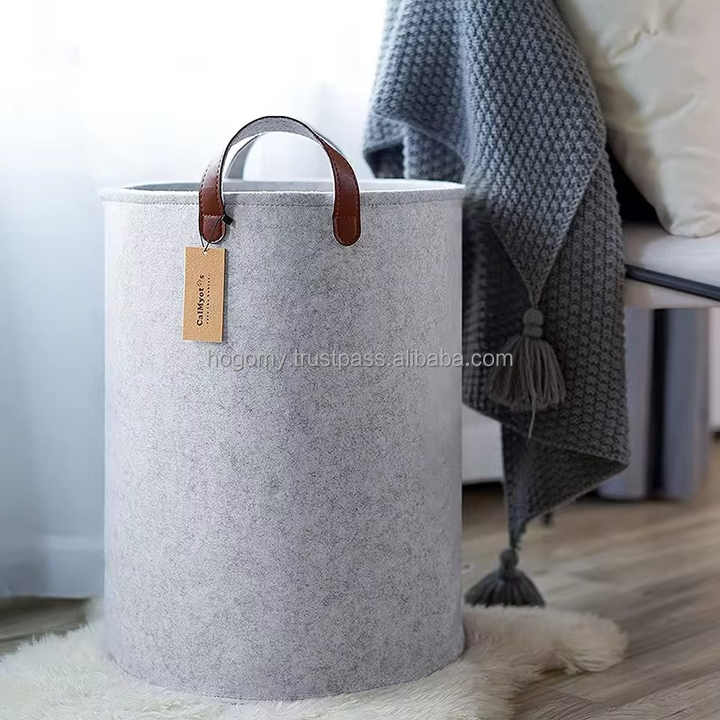 Panier à linge pliable tendance avec poignée en cuir, en feutre lavable, pour le rangement des vêtements sales, idéal pour la chambre ou la salle de bain