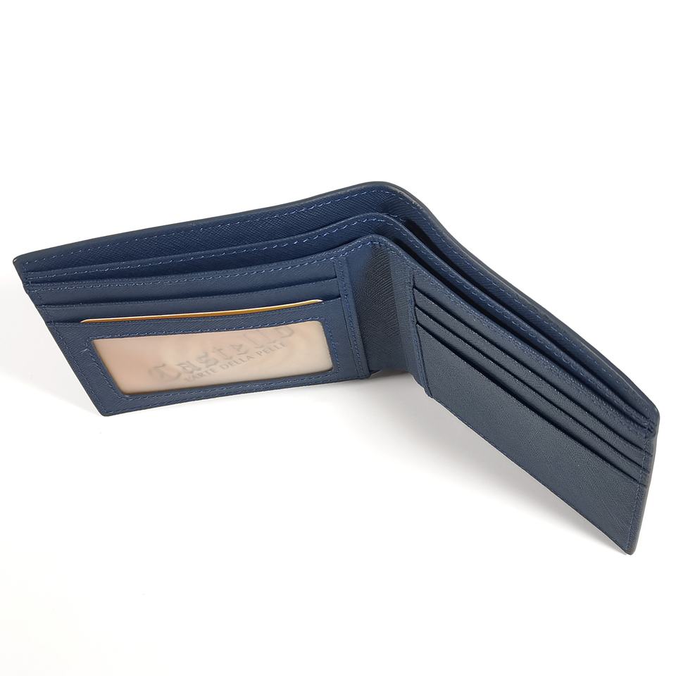 [Hot Item] Top Quality Handmade Castello Saffiano Leather Men Bi-fold Billfold ID Card Wallet Passcase Navy Green Grey Black