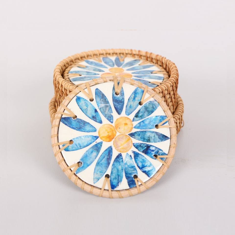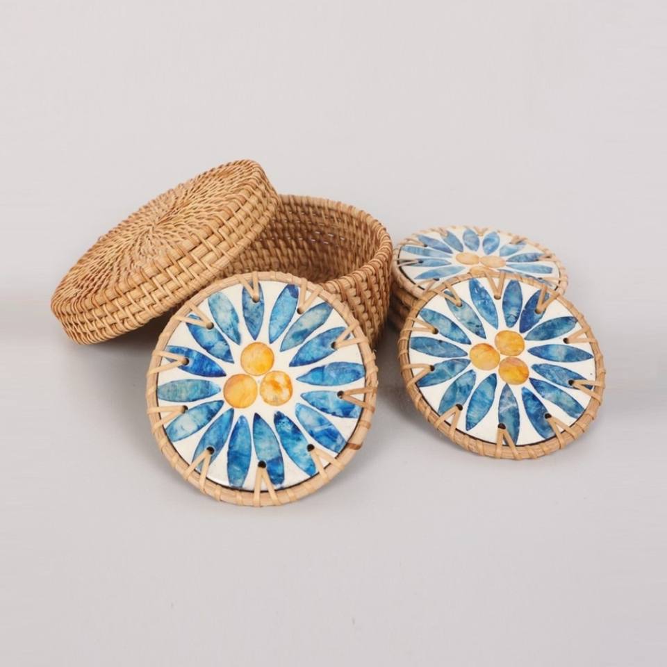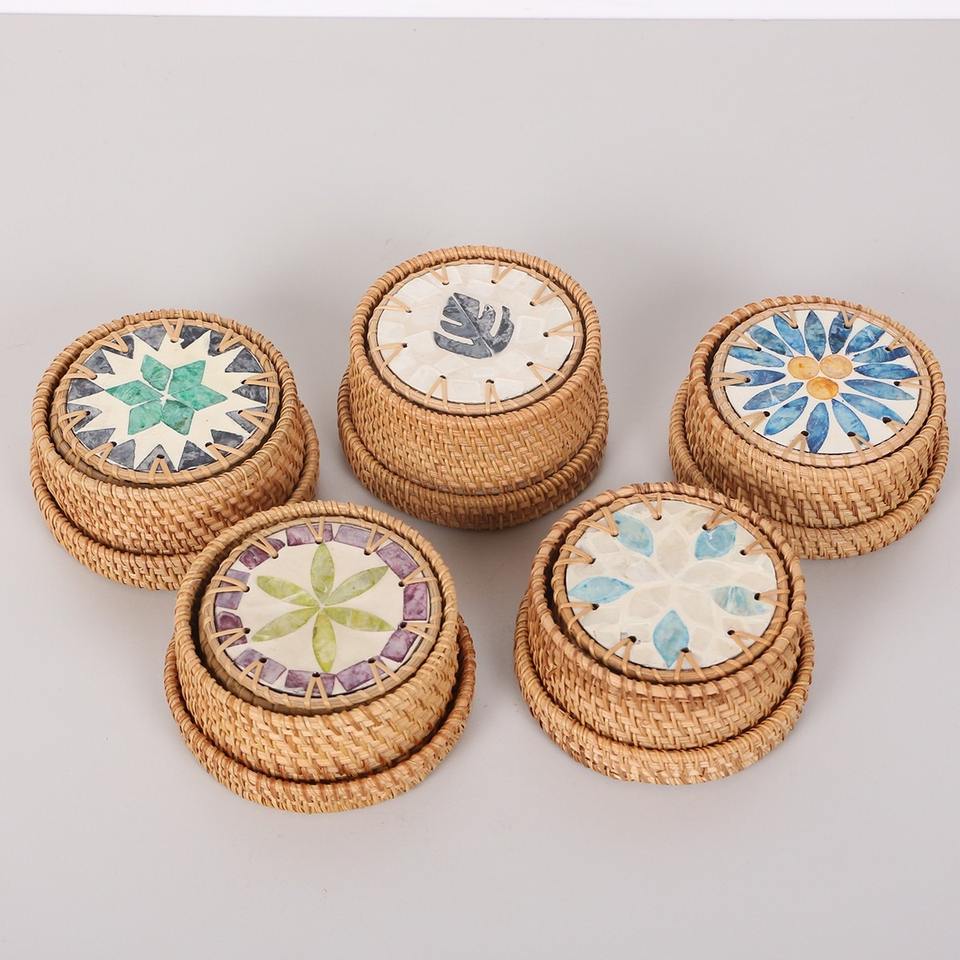Mother of Pearl Coasters with Rattan made in Vietnam