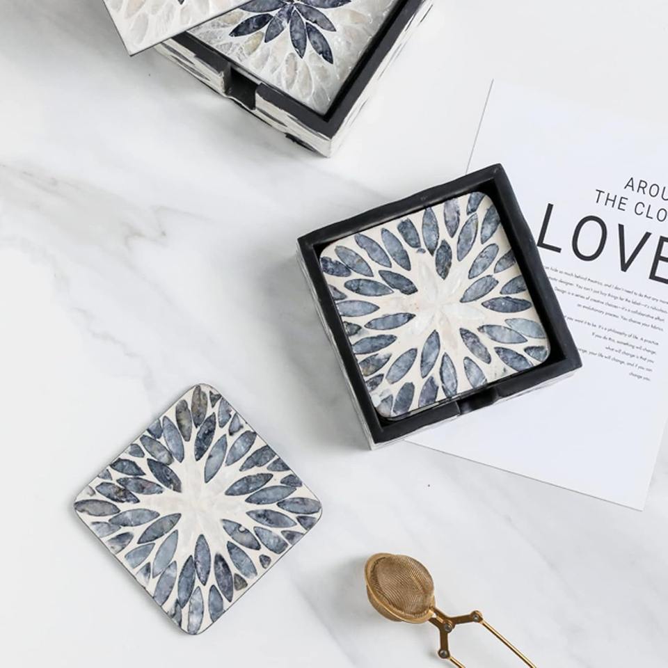 Product name:Square Mother of Pearl Coasters with Holder for Tableware