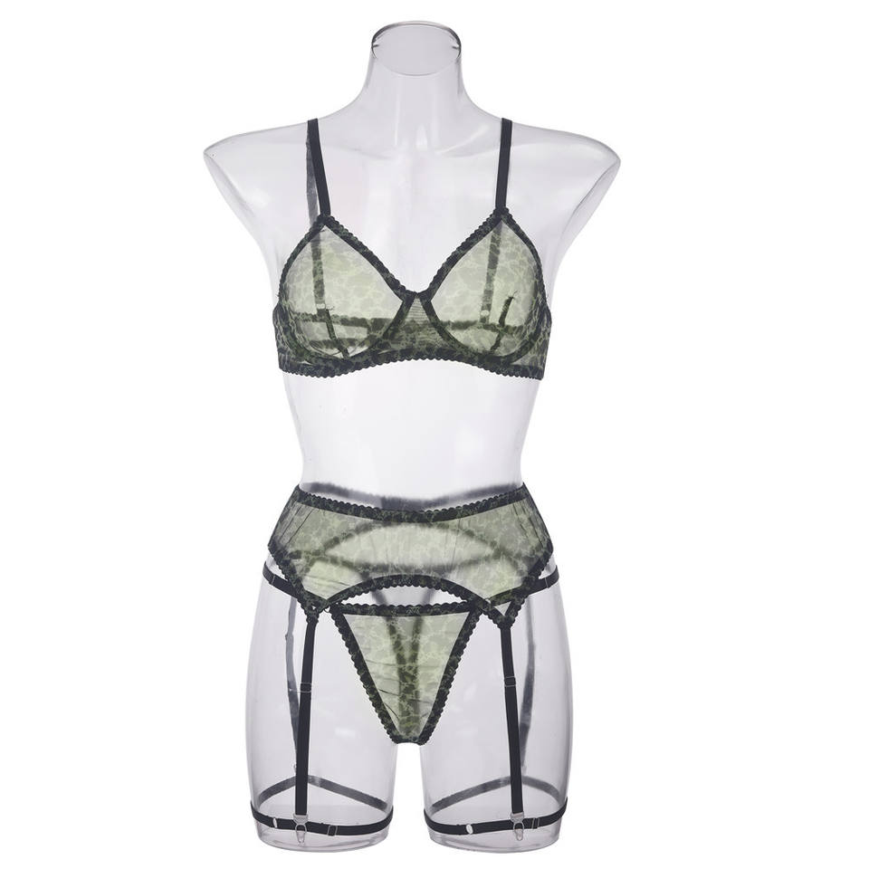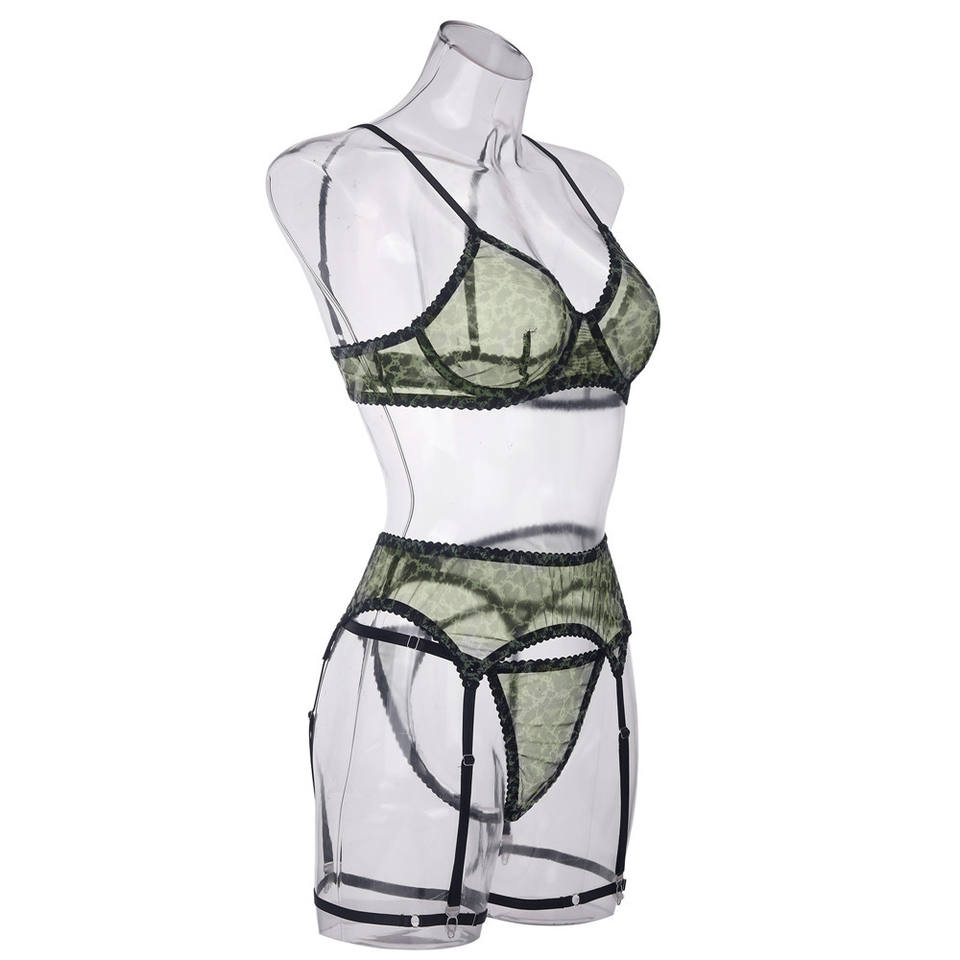 Ensemble de lingerie en maille transparente à imprimé léopard de luxe, nouveau, pour poitrine généreuse, ensemble de 3 pièces, soutien-gorge et string