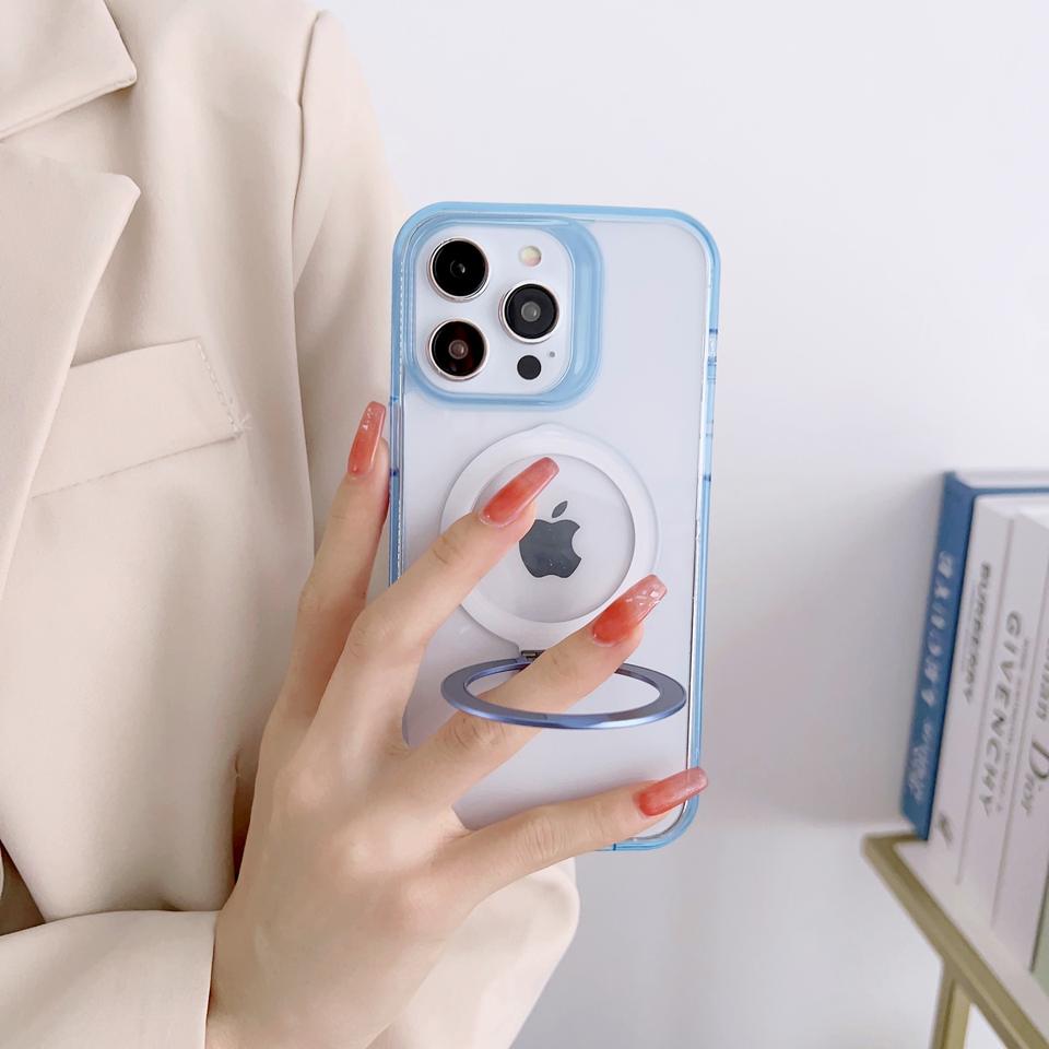 Coque de téléphone en TPU transparente magnétique chaude avec support pour iPhone 15 14 13 12 11 Pro max housse antichoc accessoires de téléphone portable
