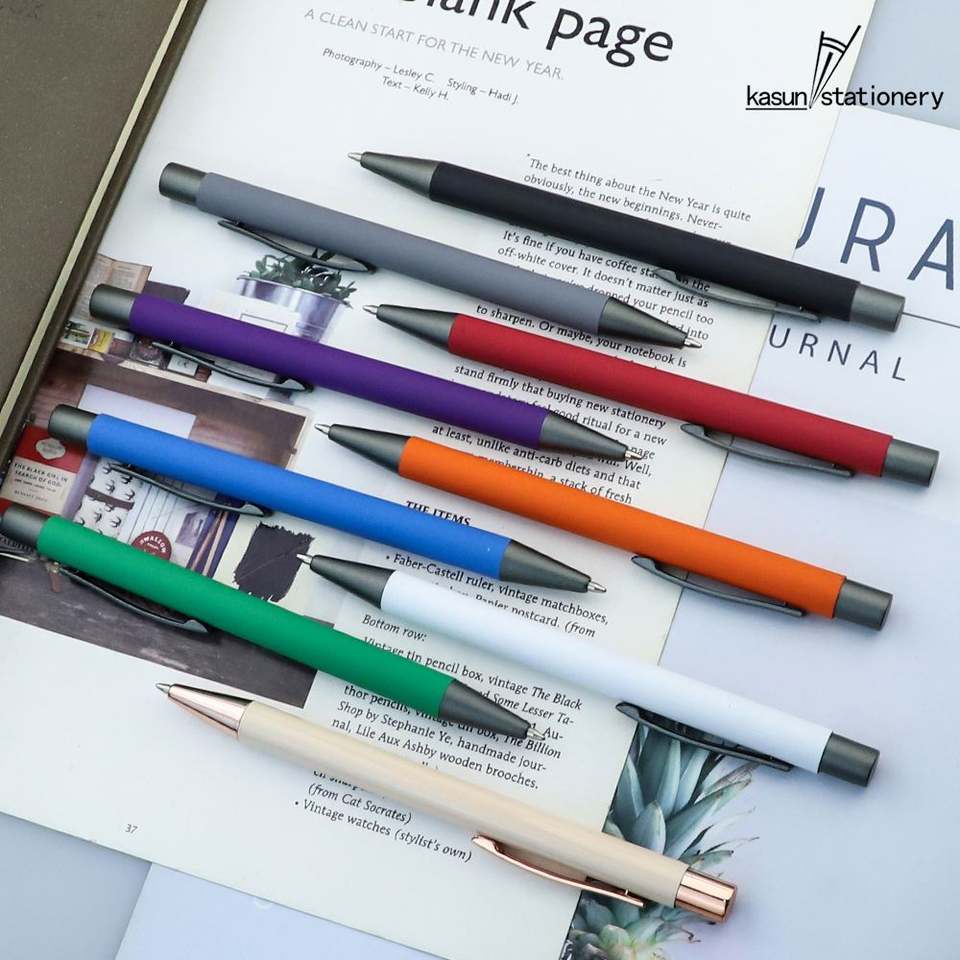 Stylo bille promotionnel en métal à clic avec grip en caoutchouc, production rapide, vente en gros