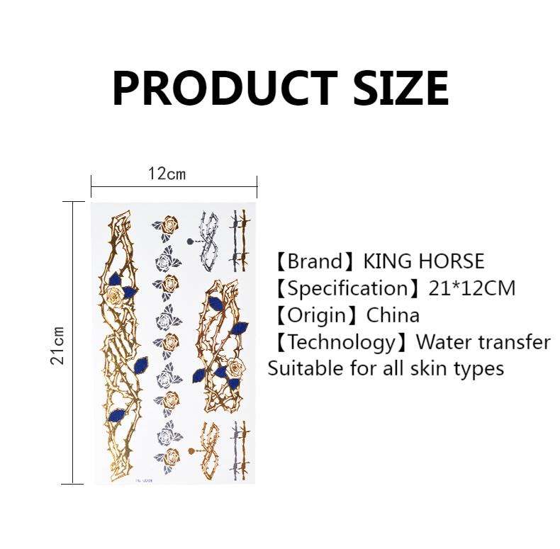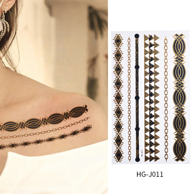 Hot New Or Métallique Chaîne Bracelet Tatouage Autocollants pour Femmes Étanche Feuille Bijoux Bras Poignet Corps Art Décoration