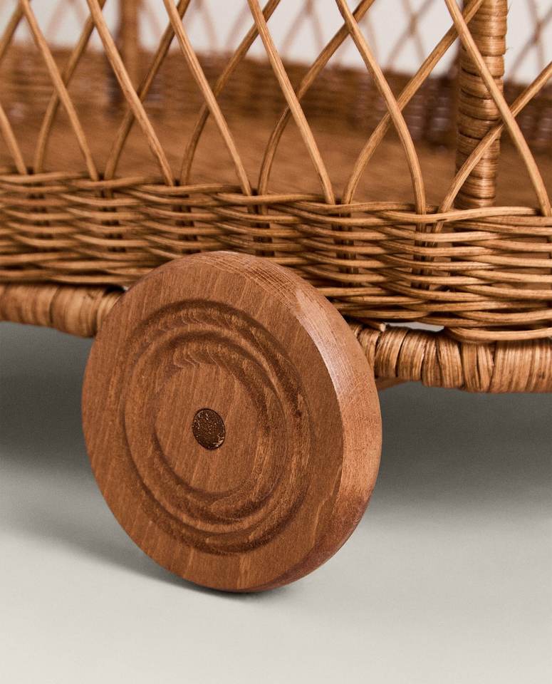 Hot New Item Wicker Scalloped Rattan Trolley for Kid Playing Safe Moving Around and Nursery Decor Kid Room Made in Vietnam