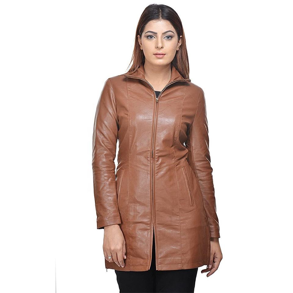 Nom du produit:Manteau long en cuir d'agneau pour femmes
