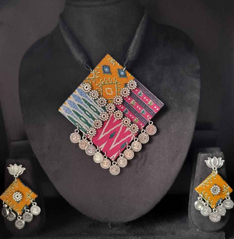 Offres spéciales collier en tissu traditionnel fait à la main ensemble de boucles d'oreilles avec Navratri oxydé porter Boho Tribal tissu collier et boucles d'oreilles
