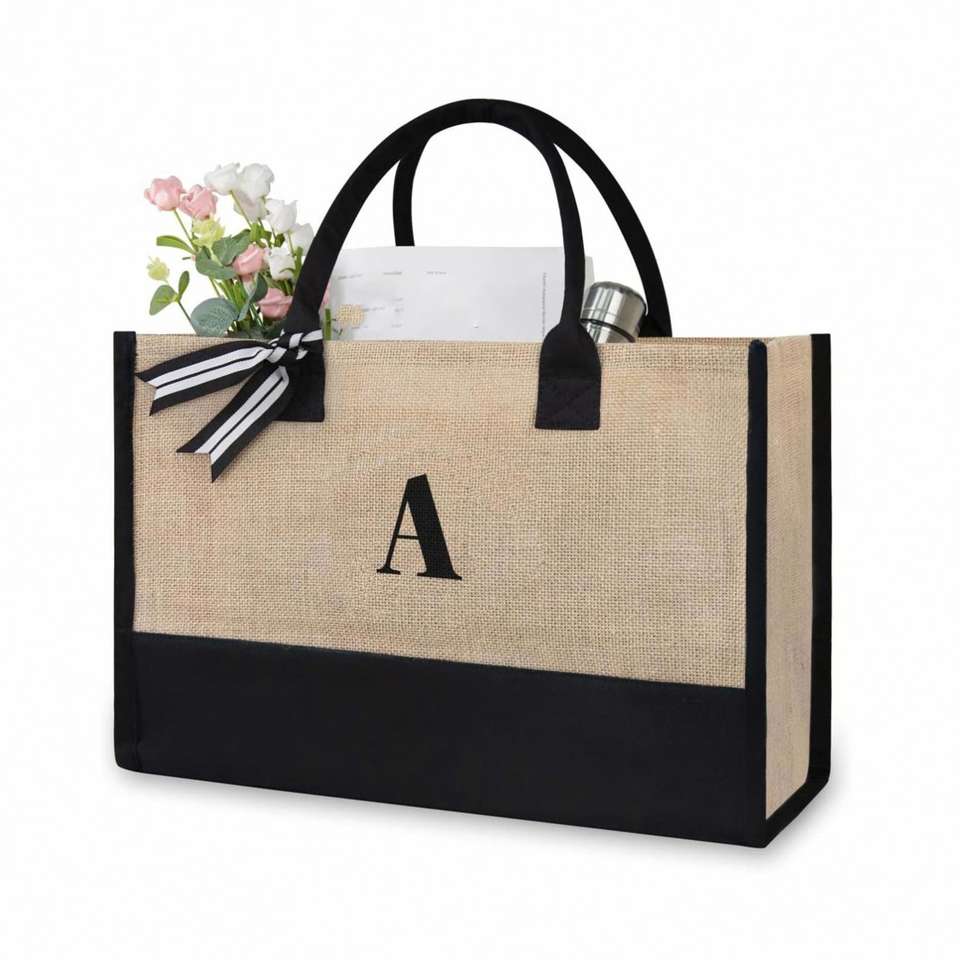Sac fourre-tout en toile de jute personnalisé avec logo, idéal pour les mariages, les vacances à la plage, le shopping, un excellent cadeau