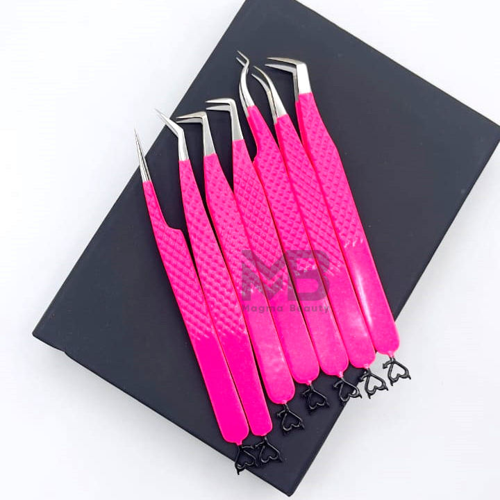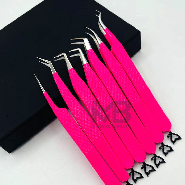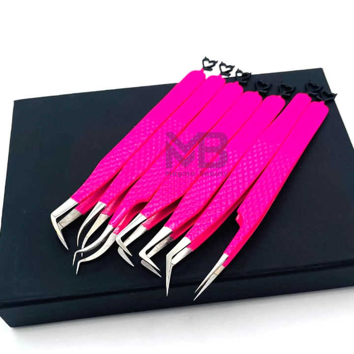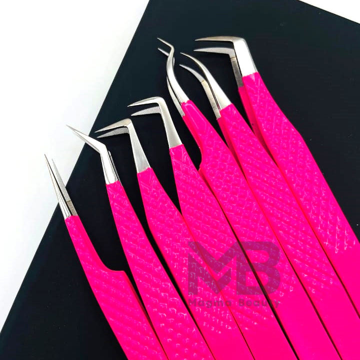 Pointe de ruban enduit de couleur rose vif Pince à épiler d'extension de cils Diamond Grip en acier inoxydable japonais Pointe de fibre de marque privée