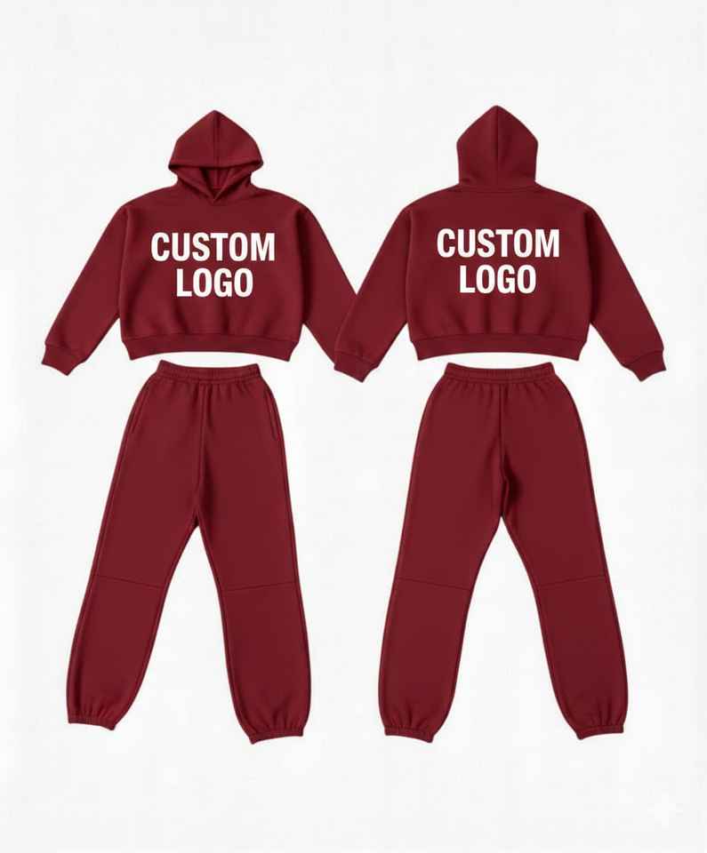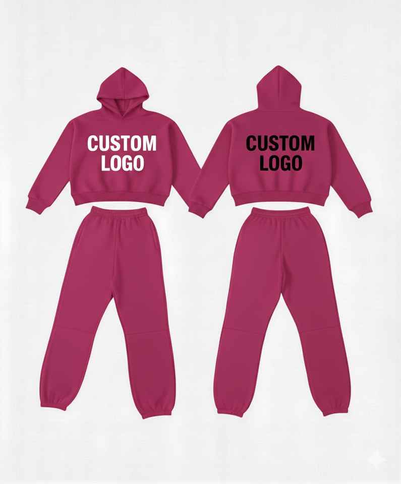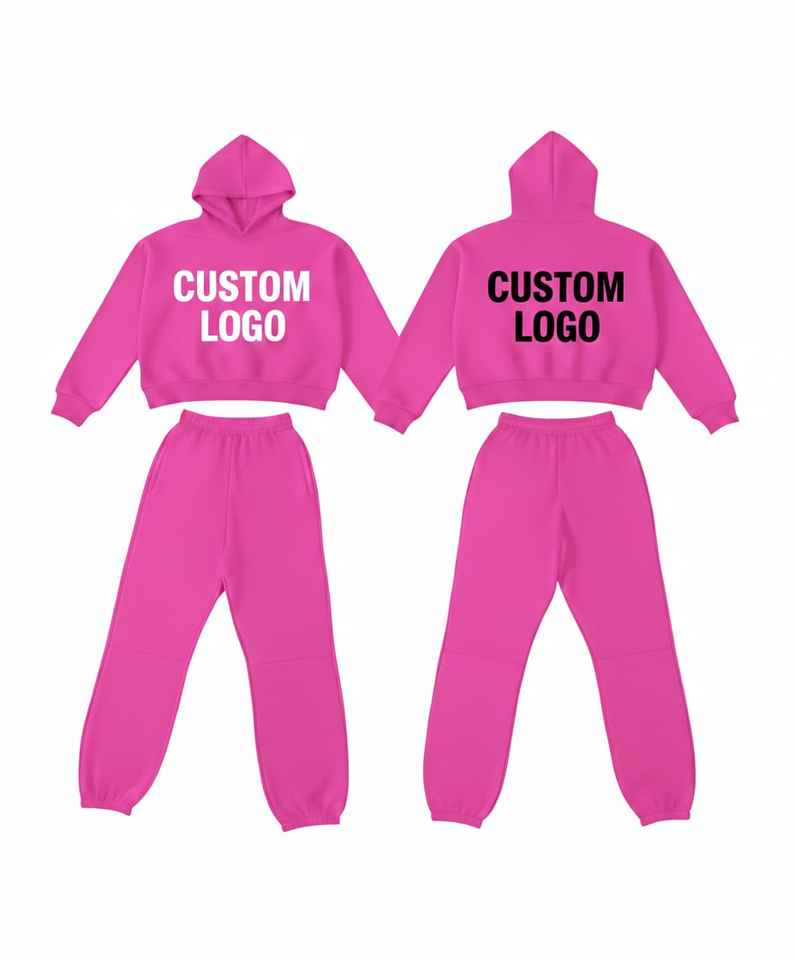 Ensemble survêtement femme 2 pièces rose vif personnalisé avec logo, en molleton 100 % coton respirant et écologique, vente en gros