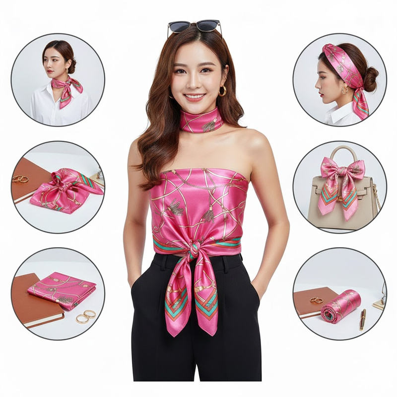 Keywords:Custom Brand Design Hijab Bandana Digital Print 100% Silk Scarf Satin