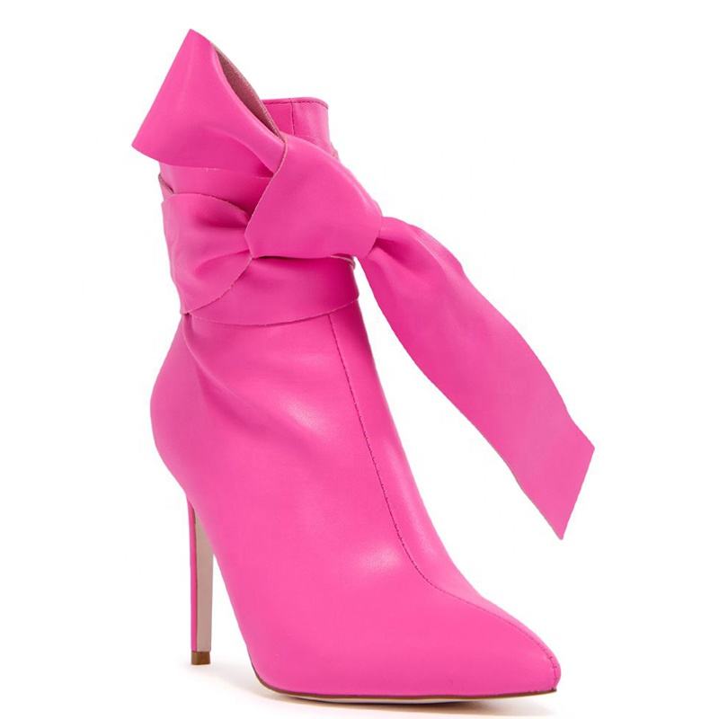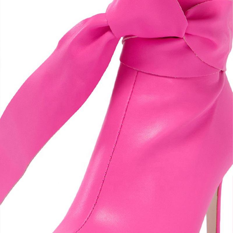 Bottines courtes sexy pour femme à bout pointu, extensibles, à talon aiguille, avec nœud en dentelle