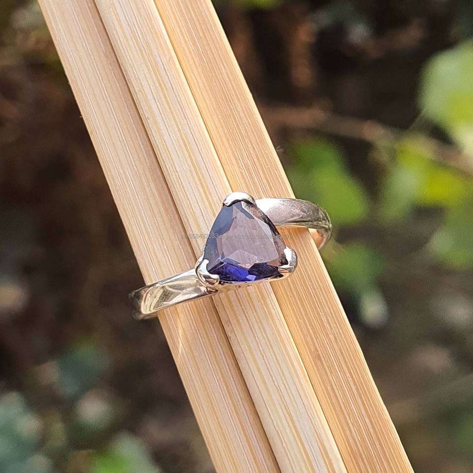 Nom du produit:Bague en argent sterling 925 massif avec véritable pierre précieuse Iolite bleue