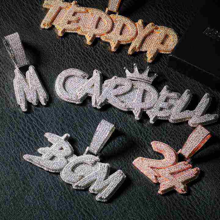 Collier à breloques hip-hop pour hommes plaqué rhodium, personnalisé, avec pendentifs en moissanite VVS – Prix de gros très demandé