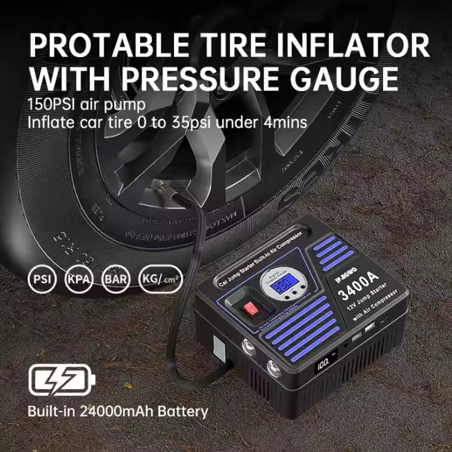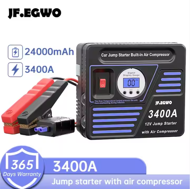 Hot Portable 6-1 voiture batterie Booster chargeur 3400A batterie externe compresseur d'air sortie Kit d'urgence pour camion 4000A lumière LED