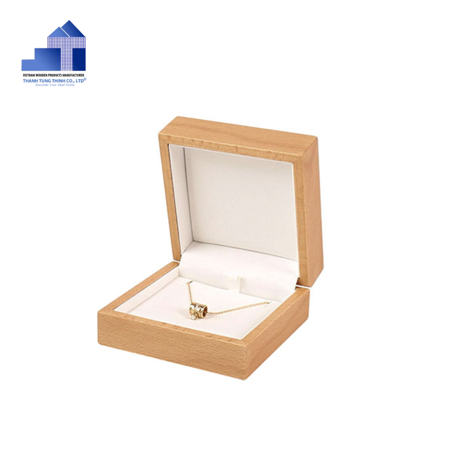 Produit populaire Boîtes à bijoux carrées modernes en bois avec logo personnalisé Emballage de souvenirs de mariage durable et durable pour parures de bijoux
