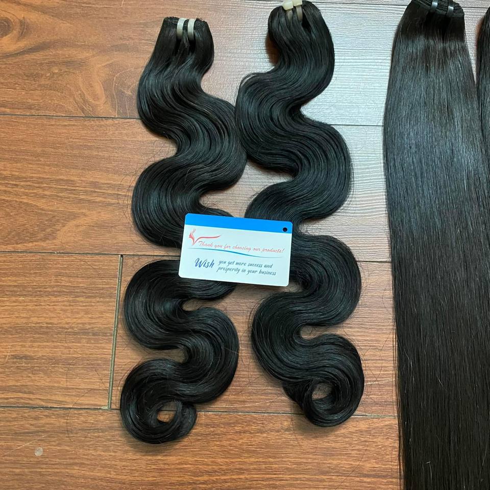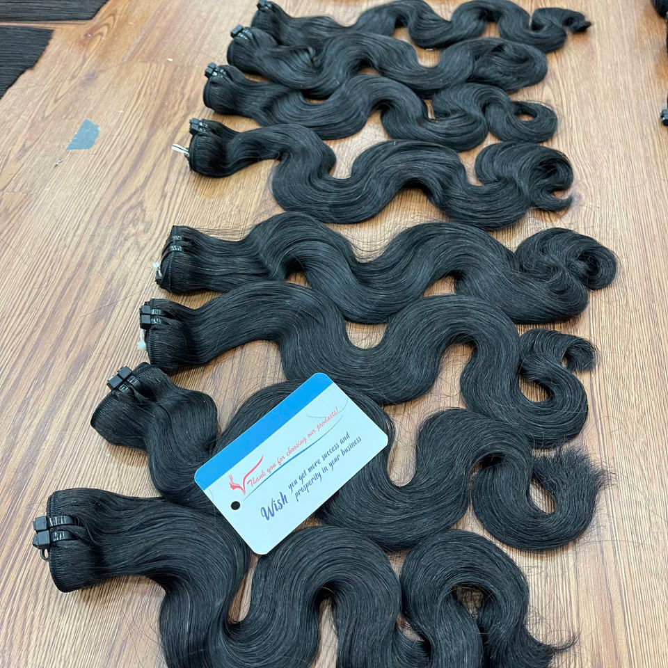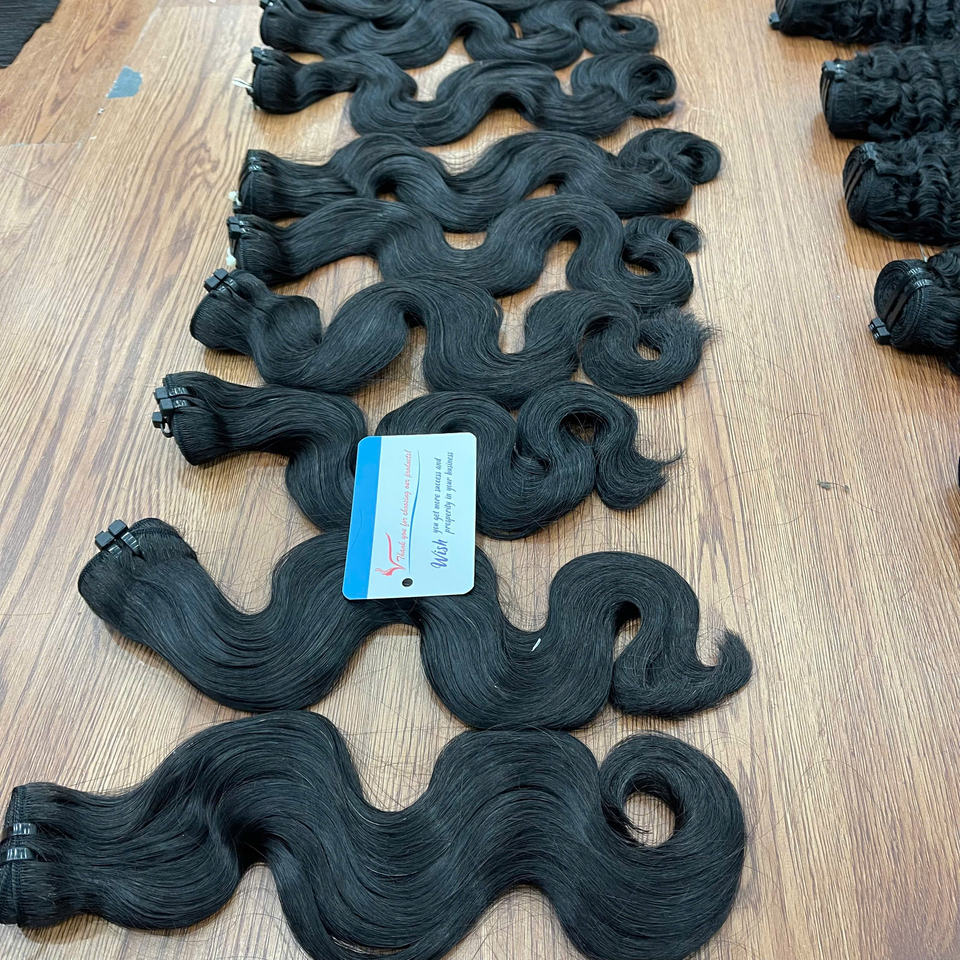 Produit phare : Cheveux naturels noirs ondulés à la vapeur, tissage double épaisseur, cheveux humains vietnamiens, sans perte ni nœuds