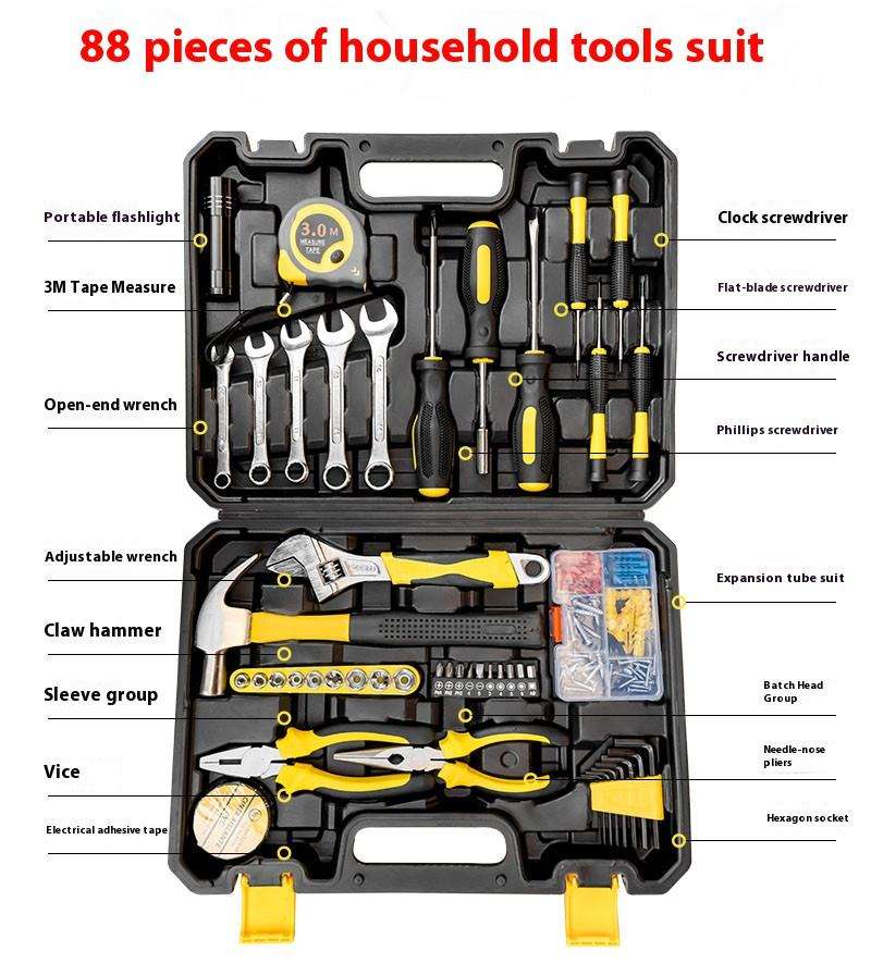Kit d'outils complet professionnel 108 pièces pour la menuiserie, les réparations automobiles et l'entretien domestique, en métal, avec mallette de transport en plastique OEM