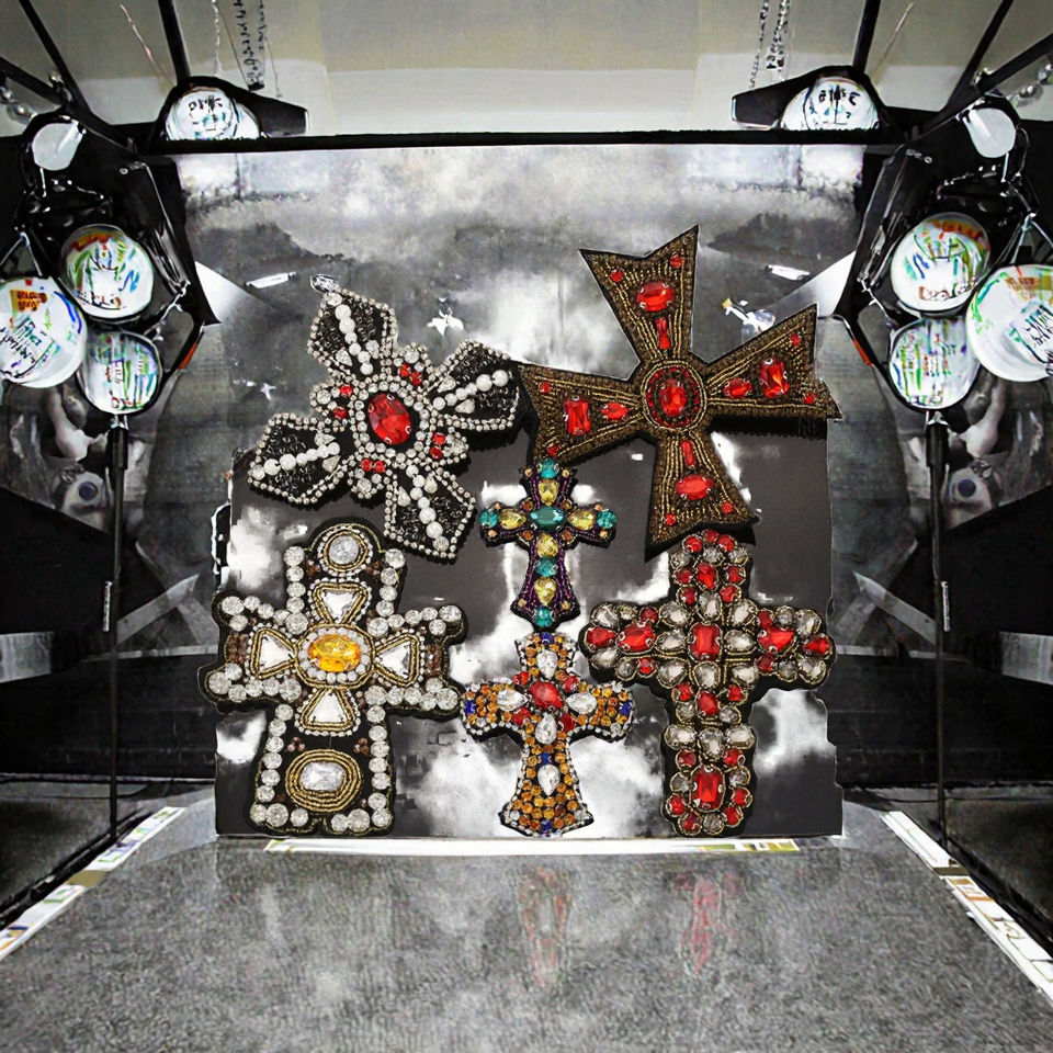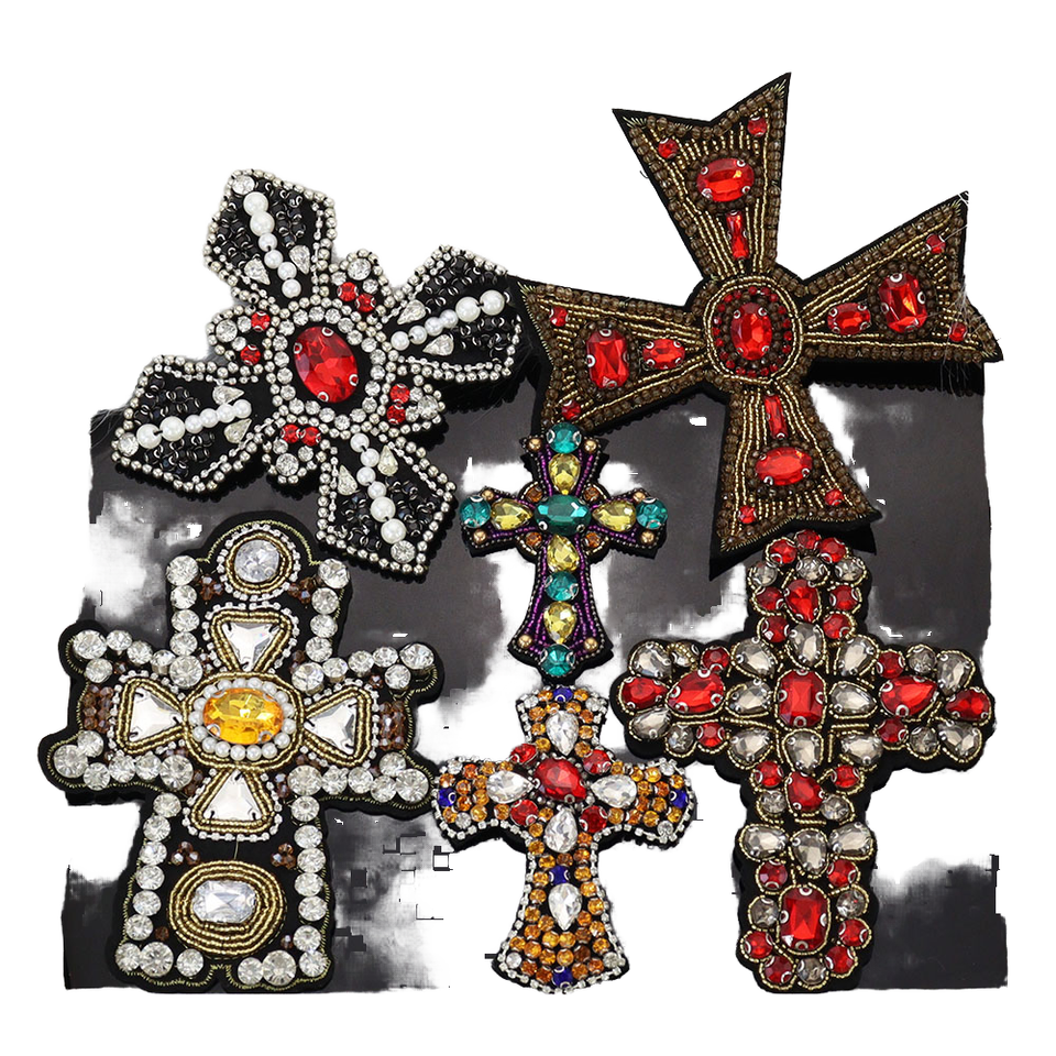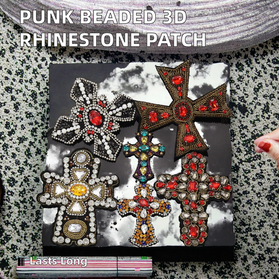 Patch brodé perlé grand format style Hot Punk, badge croix 3D en strass, écologique, pour transfert thermique DIY, thermocollant ou à coudre sur toile