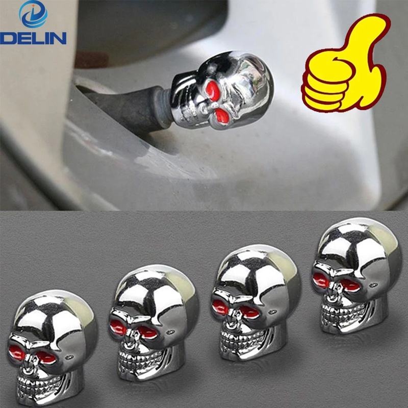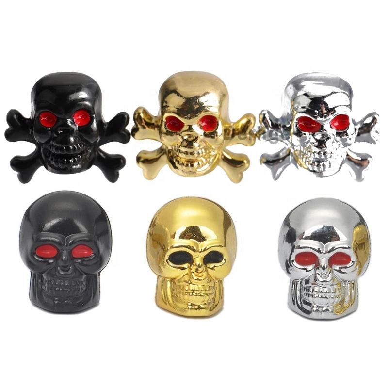Hot Rod ATV Silver Chrome Skull Shape Motorcycle Bike Car Tires Valve Stem Caps