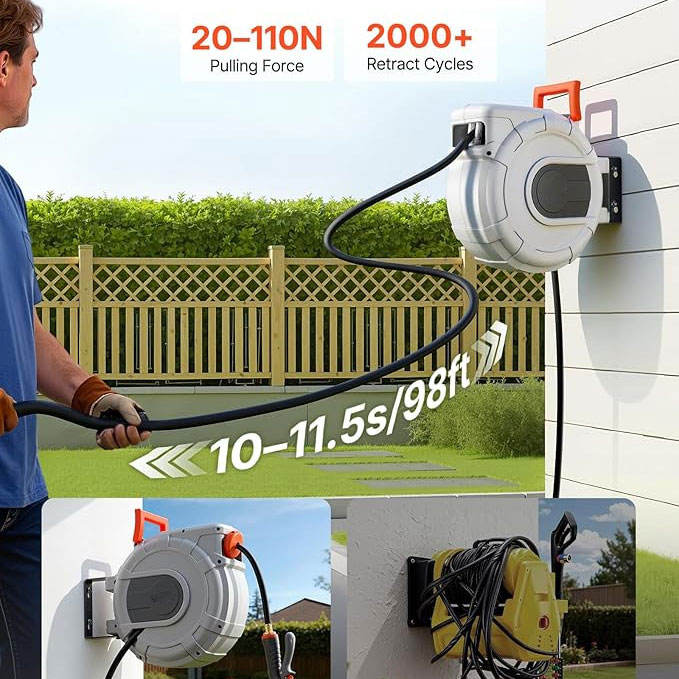 Promotion : Enrouleur de tuyau d'arrosage rétractable semi-automatique en caoutchouc, norme CNS, fixation murale pour jardin, animaux domestiques et lavage de voiture