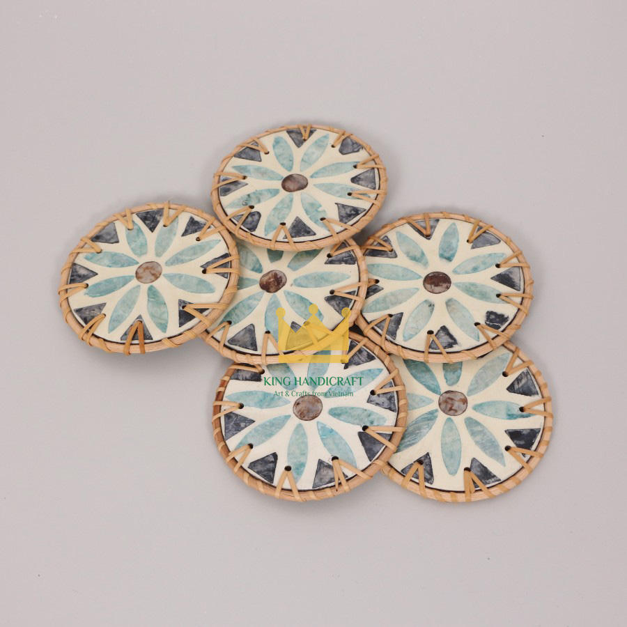 Hot Sale 10 cm Woven Rattan Coasters Eco-Friendly Insulated Cup Place Mats for Drinks Restaurants Painted Shell Design