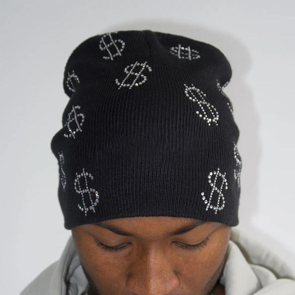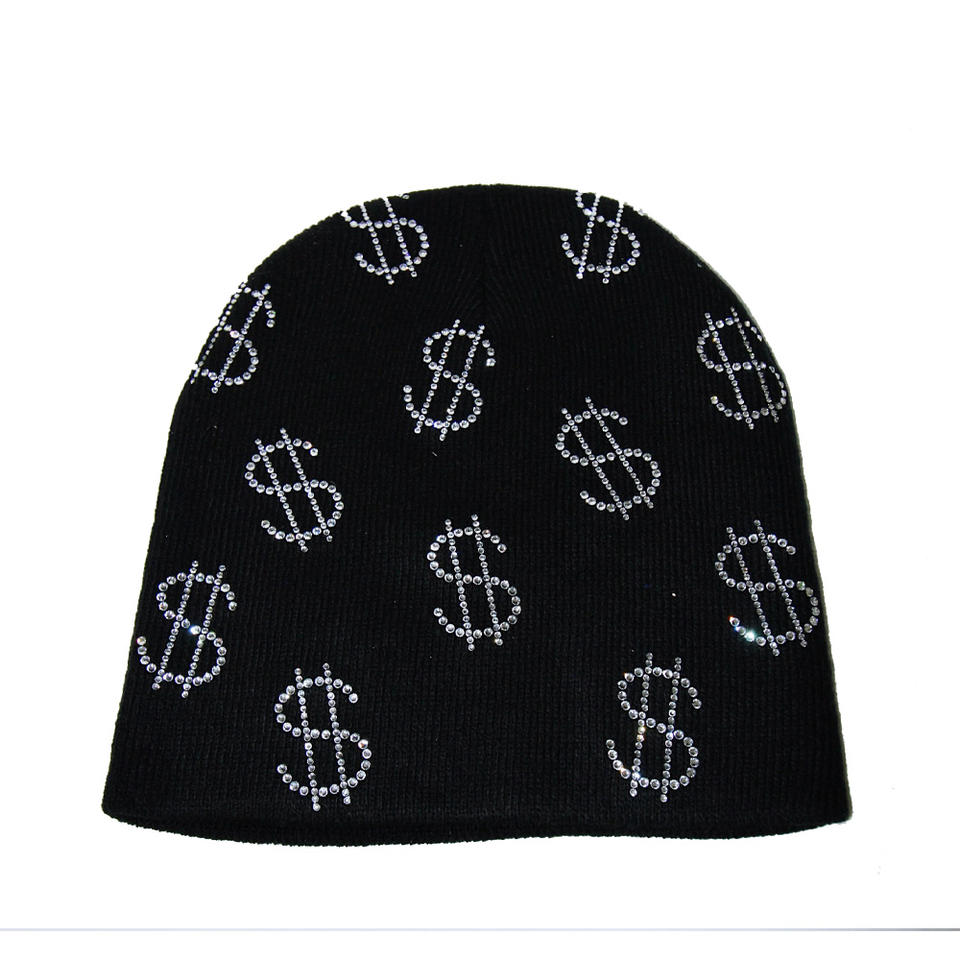 Bonnes affaires : Bonnets unisexes en acrylique à motif dollar avec strass thermocollants, taille ajustable