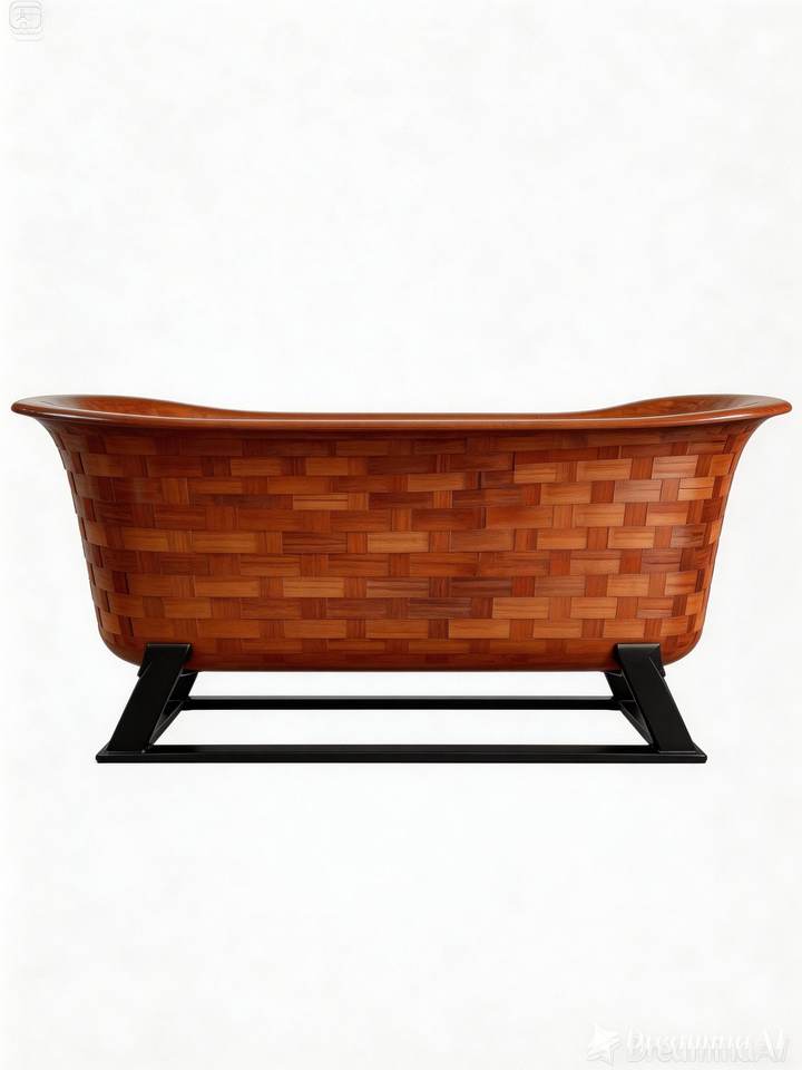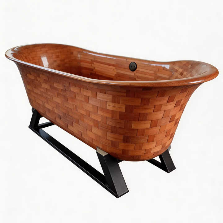 Offre Spéciale – Nouvelle Conception 100% Originale – Base de Support en Fer Thermolaqué – Baignoire Simple en Bois Parqueté Moderne et Classique pour Intérieur et Extérieur