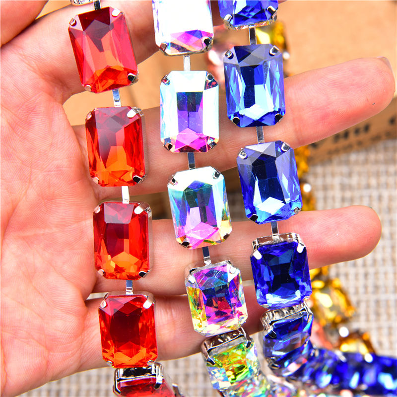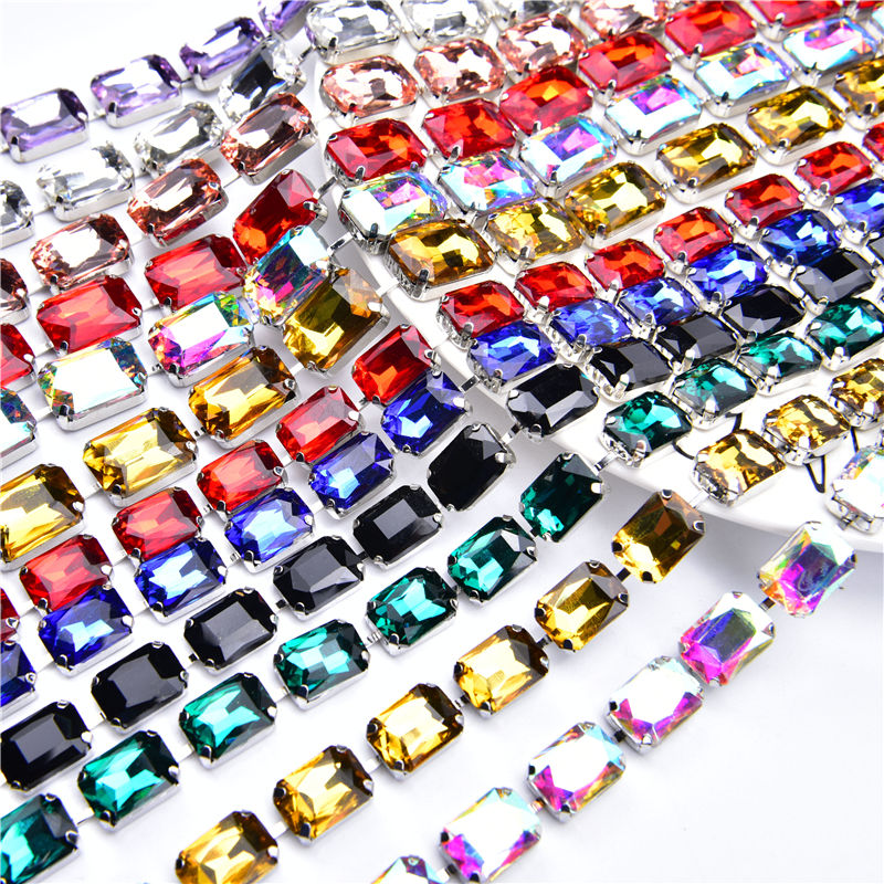 Hot-Vente 10X14Mm 13X18Mm Rectangulaire Diamant Chaîne à La Main Serré Couleur Verre Strass Bricolage Vêtements Accessoires D'art Décorations