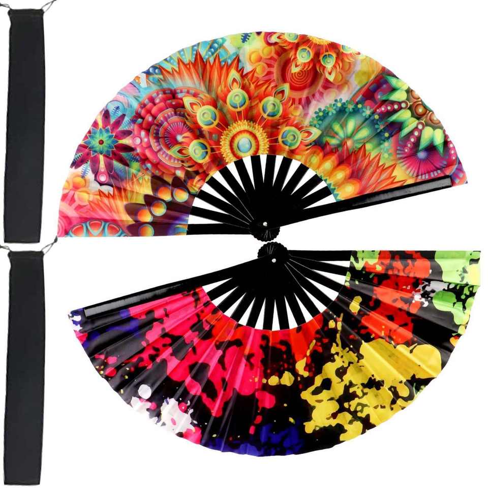Éventail Pliant en Bambou de 13 Pouces Grande Taille, Personnalisable avec Logo Imprimé, en Papier avec Décoration Peinte pour Mariages - Vente Flash