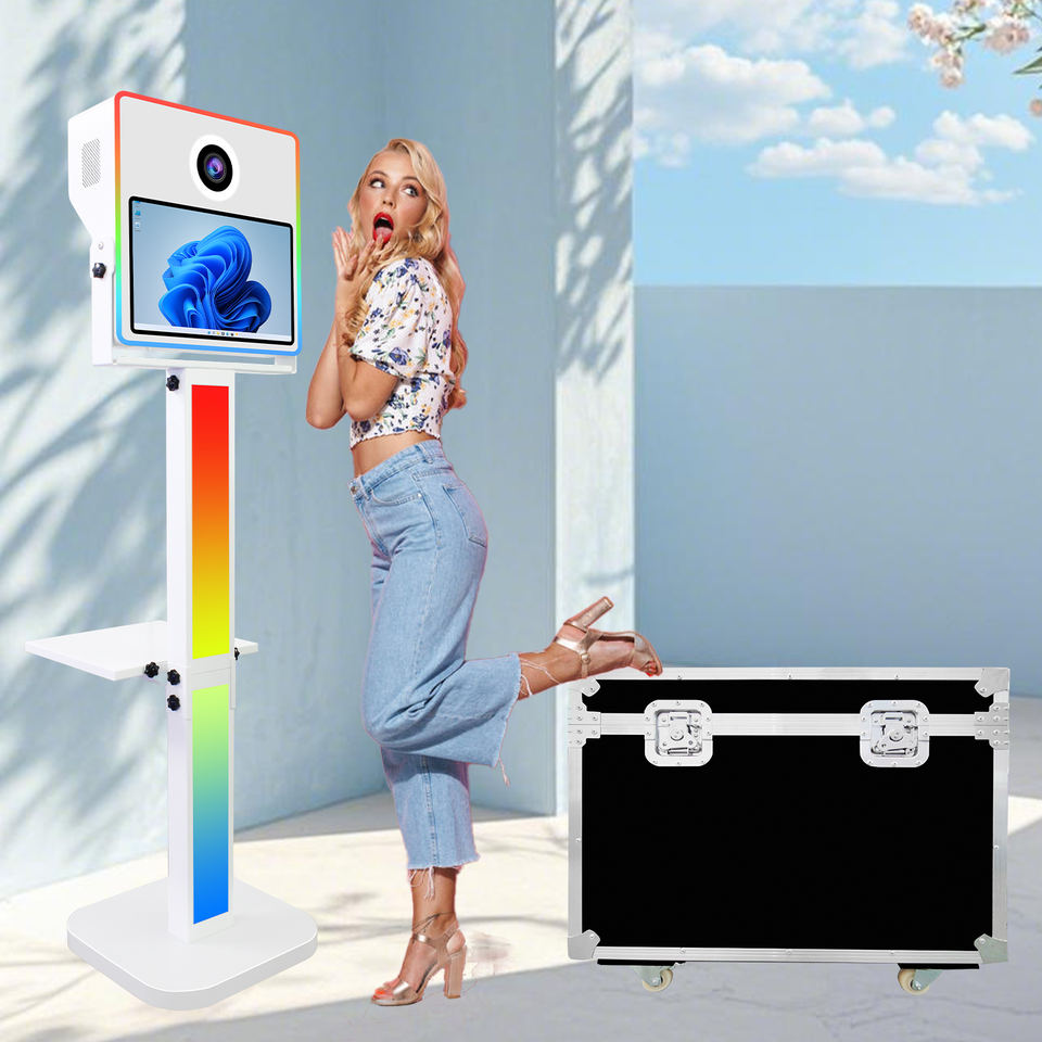 Vente flash : cabine photo DSLR à écran tactile de 15,6 pouces, compatible avec l'imprimante et l'appareil photo, machine à photomaton pour mariage