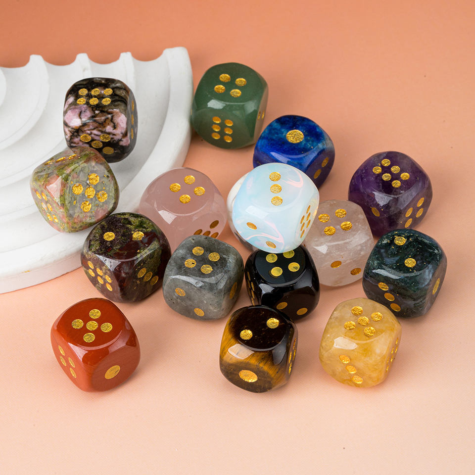 Vente flash : dés en pierre précieuse carrée de 16 mm, sculpture en pierre naturelle, artisanat en pierre taillée, pierre précieuse décorative, cadeau amusant