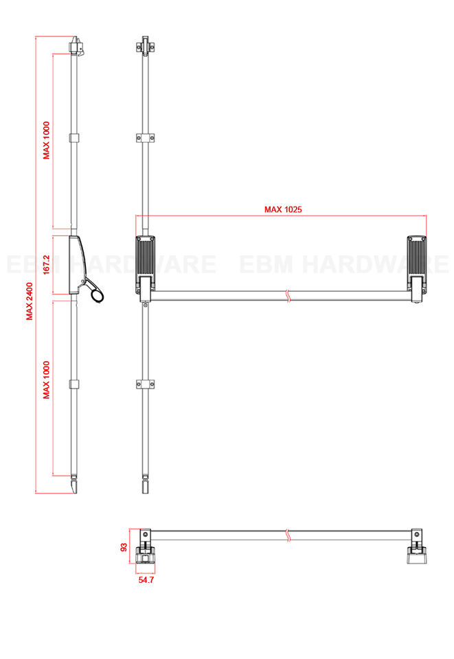 Nom:Dispositif de sortie de panique Barre de poussée Verticale de porte coupe-feu Barre de panique
