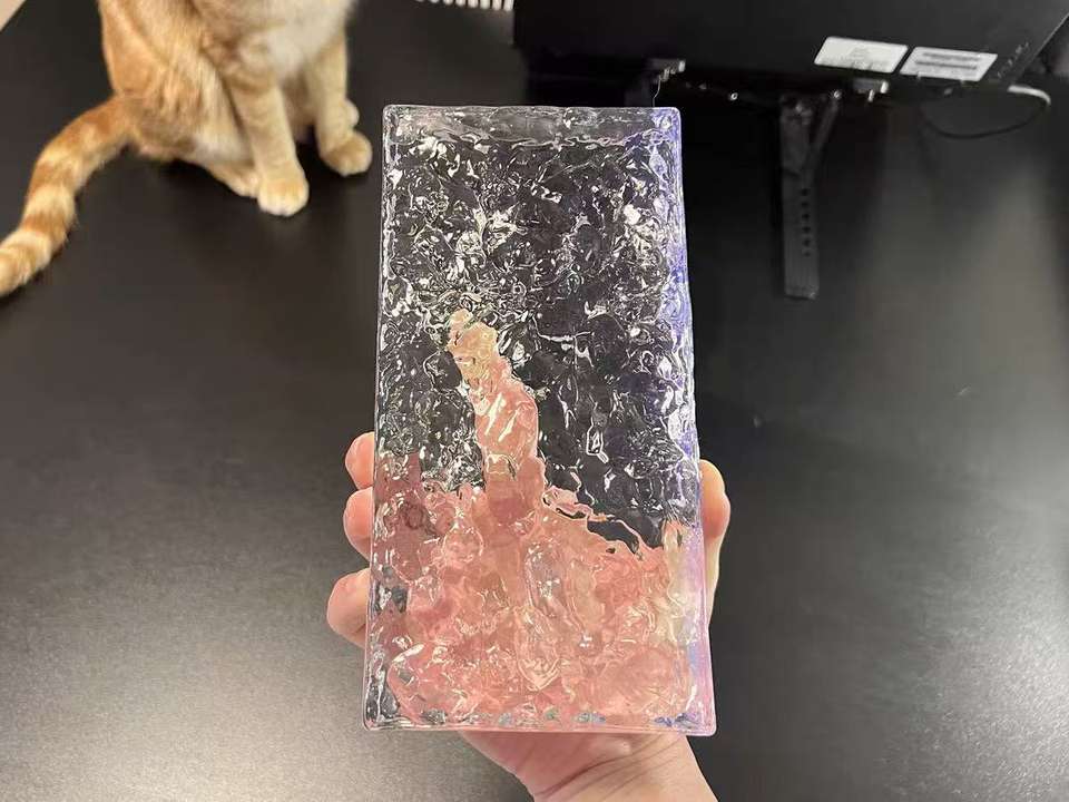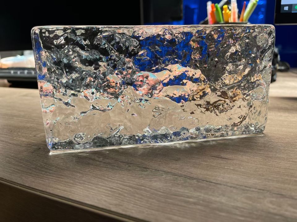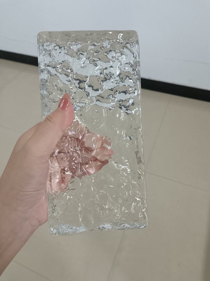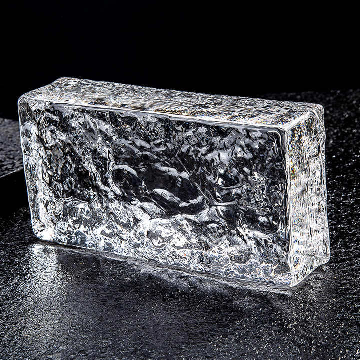 Bloc de verre 200*100*50 mm, motif cristal de glace, brique de cristal solide à fusion à chaud, cloison de séparation, vente chaude