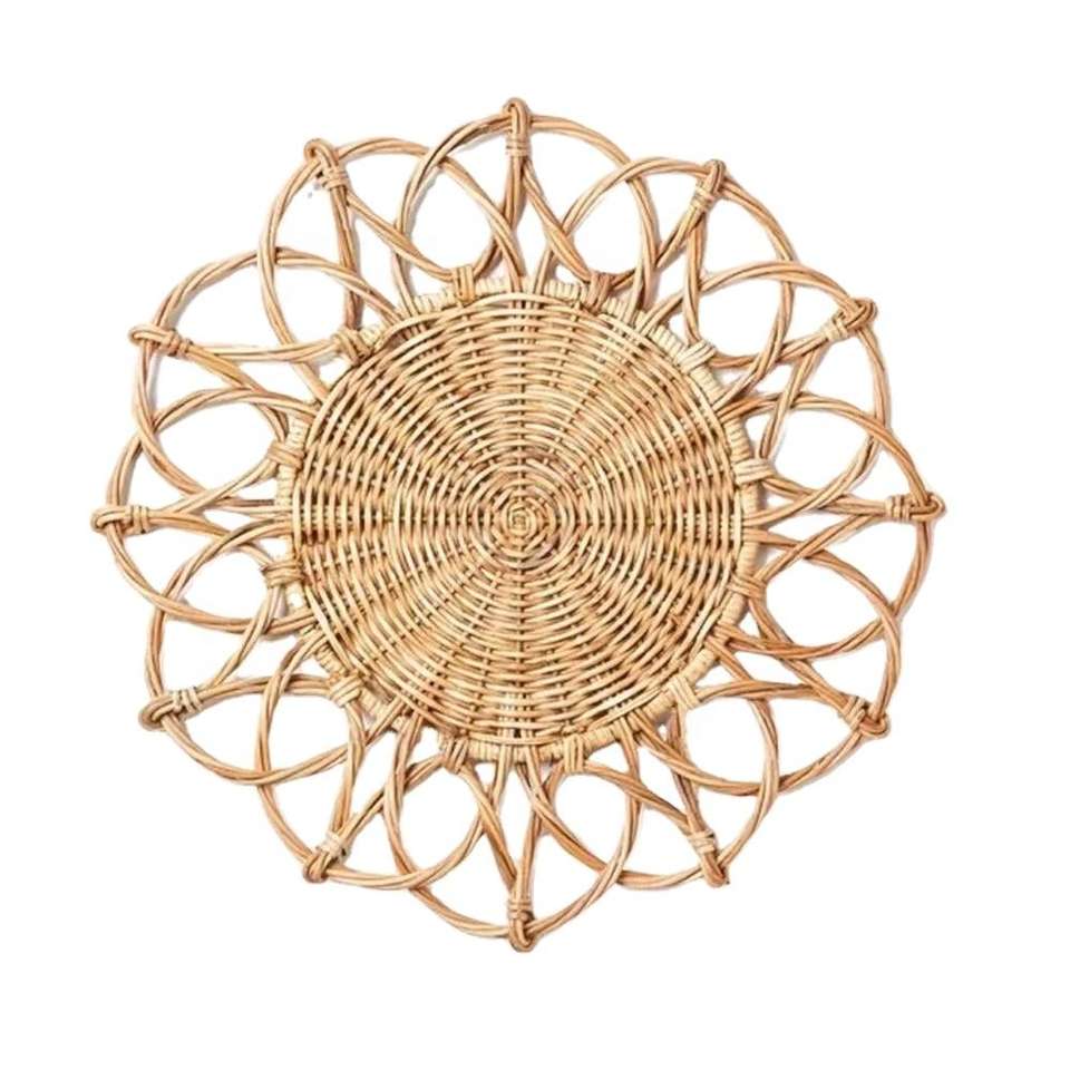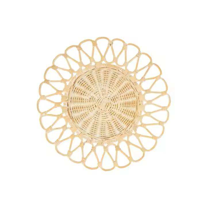 Offre Spéciale 2025 Plaques de chargeur en rotin de haute qualité Napperons en rotin à franges de fleurs de haute qualité en gros