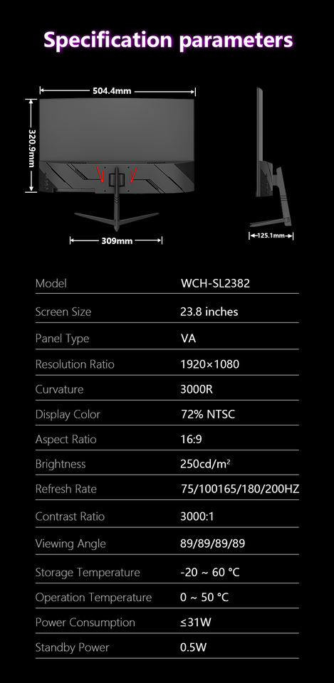 Offre Spéciale 23.8 pouces 180Hz moniteur de jeu incurvé Ultra mince lunette écran LED Full HD pour PC Gamer écran de bureau