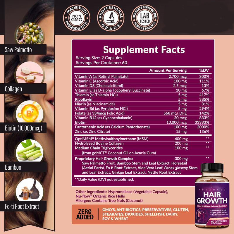 Vente flash : Complément alimentaire avancé pour cheveux 24-en-1, capsules de vitamines pour cheveux, OEM, palmier nain, biotine, collagène, pour adultes, complément de santé