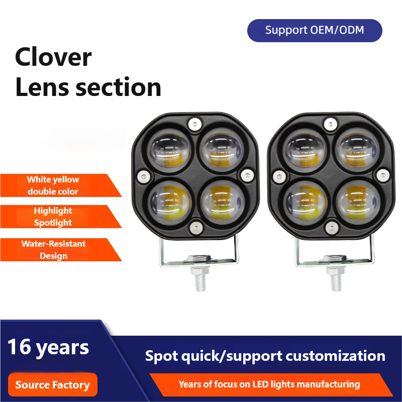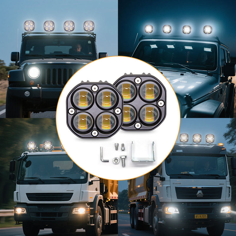 Projecteur LED bicolore 3 pouces 40W pour voiture, camion, VTT, moto 12V 24V, étanche, lumière de travail tout-terrain, phare antibrouillard - Vente chaude