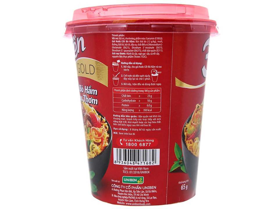 Offre Spéciale 3 Mien Gold nouilles instantanées frites avec ragoût de boeuf et herbes boîte Vietnam marque 65g/tasse