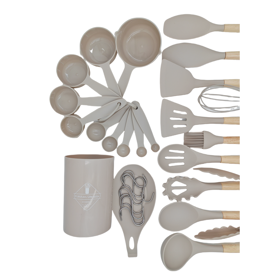 Product Name:33-Piece Silicone Rubber Wood Handle Kitchen Cooking Utensils Set