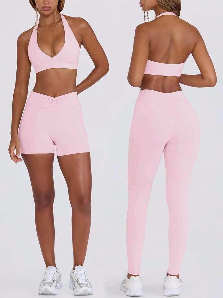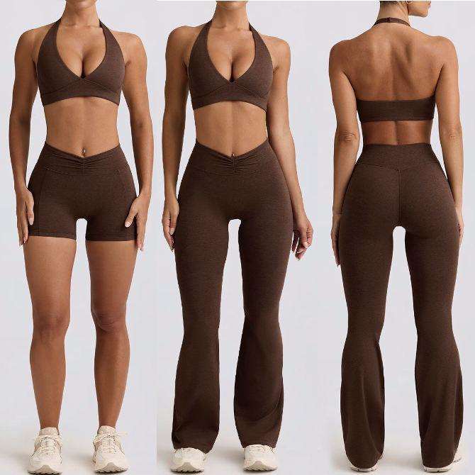 Nouvelle Collection : Ensemble de Yoga 4 Pièces Amincissant pour Femme – Soutien-Gorge de Sport et Short Taille Haute, Leggings Évasés – Tenue d'Entraînement Effet Ventre Plat