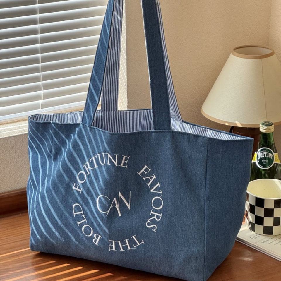 Hot Sale 40*25*12cm Double-sided Custom Pattern Design Embroidery Logo Full-color Print Tote Bag