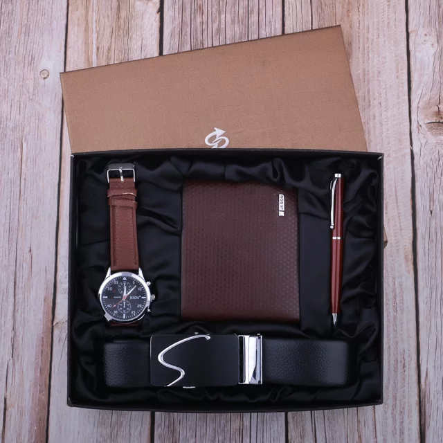 Grande Promotion Coffret Cadeau 4 Pièces/Ensemble Homme, Portefeuille, Ceinture, Montre – Idéal pour Anniversaire