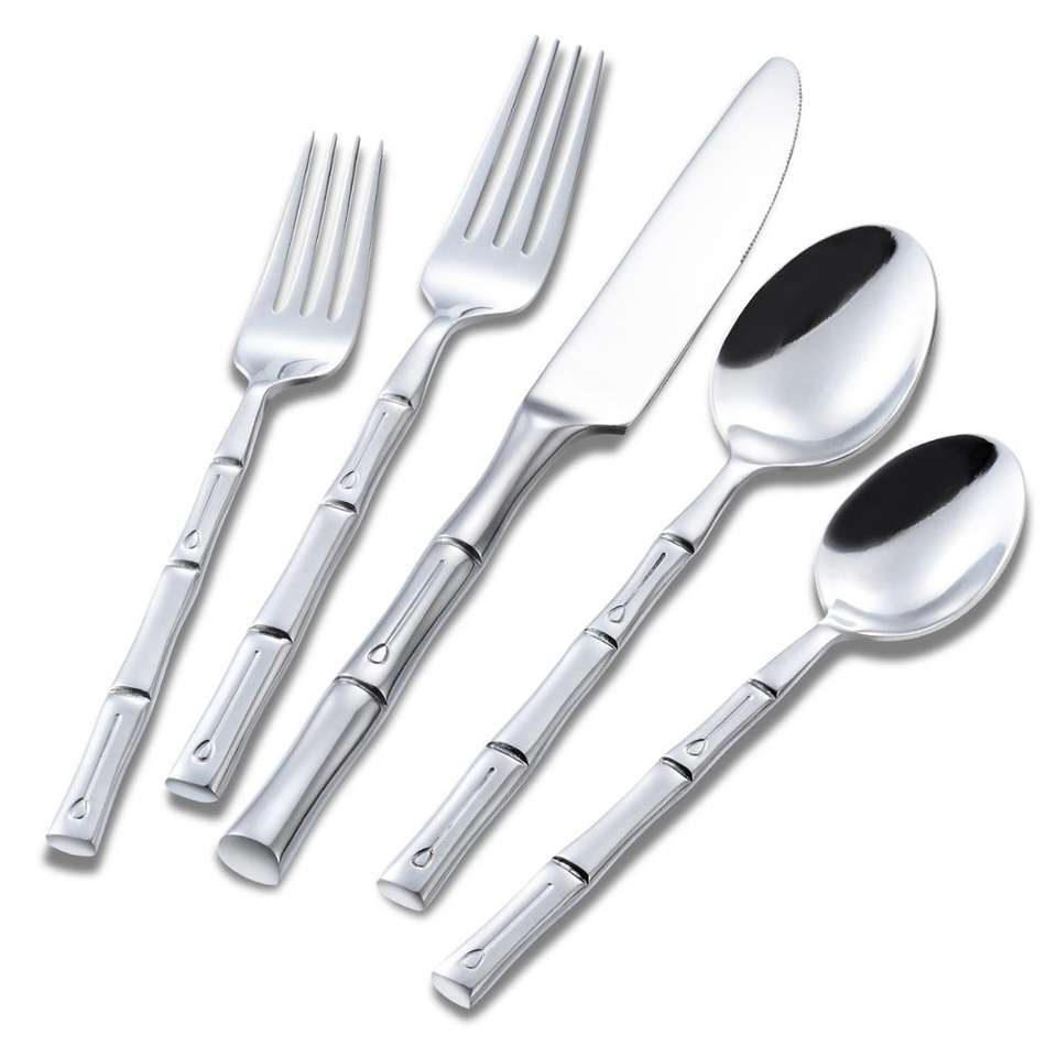 1 ensemble comprend:1 couteau de table, 1 cuillère de table, 1 fourchette de table, 1 cuillère à café, 1 fourchette à salade