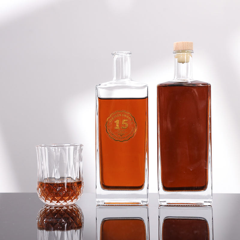 Vente flash : Bouteilles carrées en verre de haute qualité de 500 ml pour les spiritueux vietnamiens, le whisky écossais, les types de vodka, les boissons, image avec bouchon