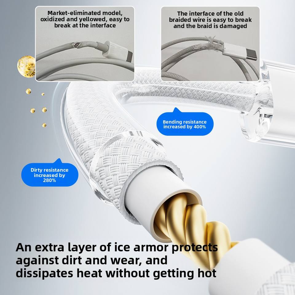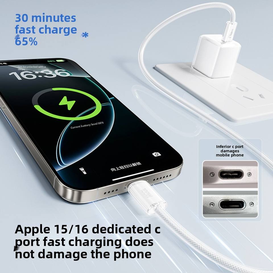 Vente flash, câble de données USB-A USB-C à charge rapide 5A 100W, transfert 480 Mbps, nylon transparent tressé, conducteur en cuivre pur pour IOS