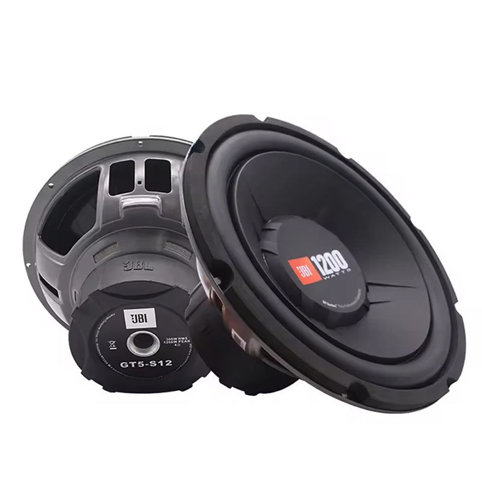 Vente flash : Caisson de basses pour voiture 600W RMS 12 pouces GT5-S12 avec basses puissantes, fréquence 27-450Hz, montage AEBI, alimentation 12V CC