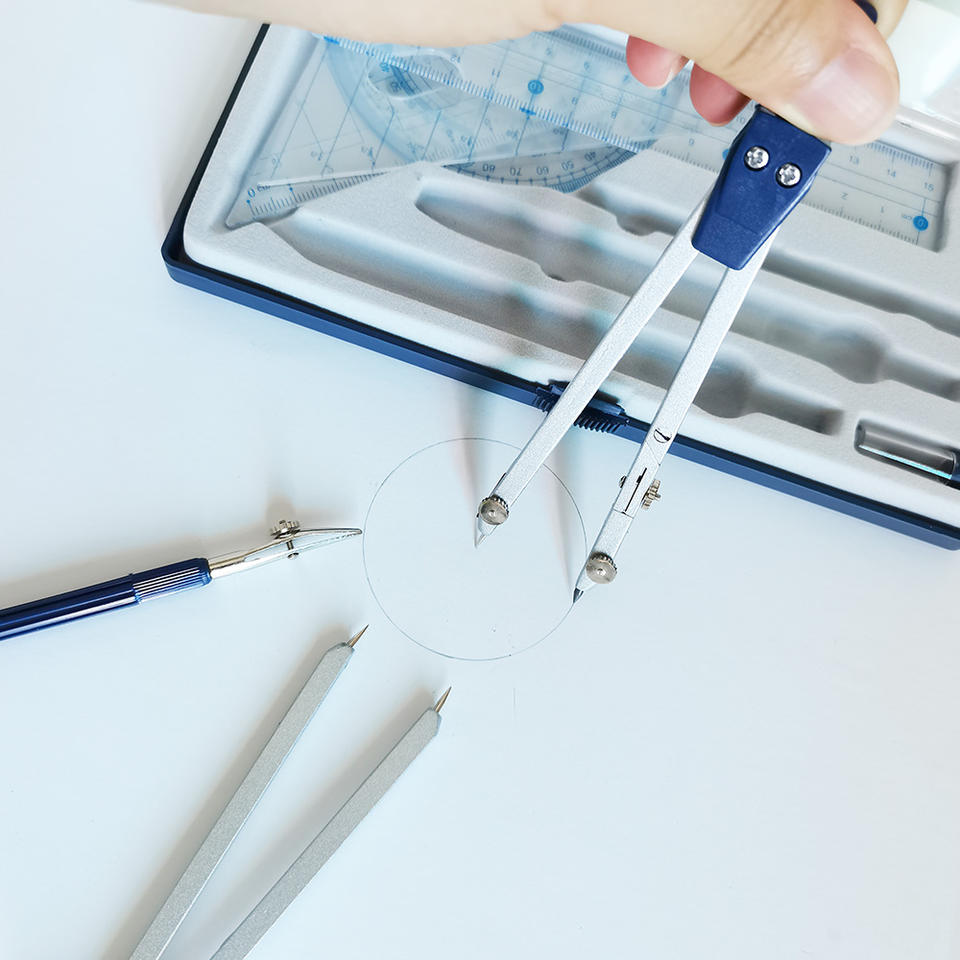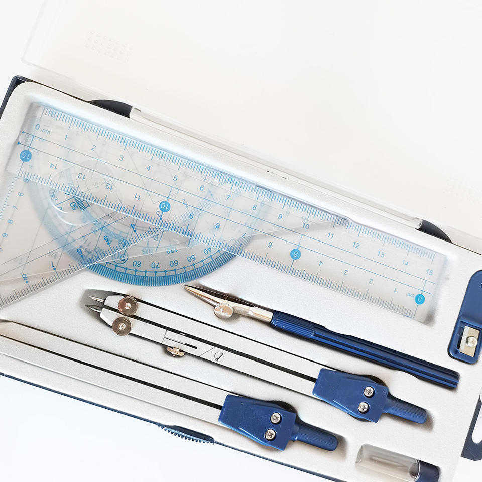 Offre Spéciale 9 pièces géométrie boussole ensemble boîte personnalisée Logo imprimé Place matière plastique pour dessin technique